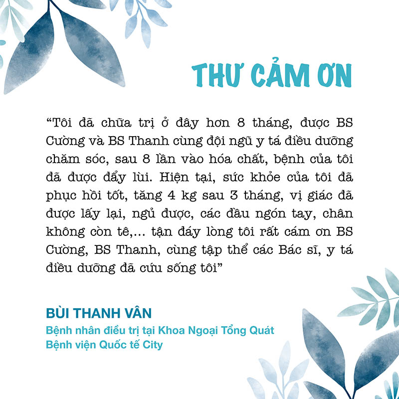 Xin phép được trích đăng lại Thư cảm ơn từ bệnh nhân Bùi Thanh Vân, được PGS.TS.BS Nguyễn Tấn Cường và BS.CKI Nguyễn Bảo Xuân Thanh điều trị thành công.