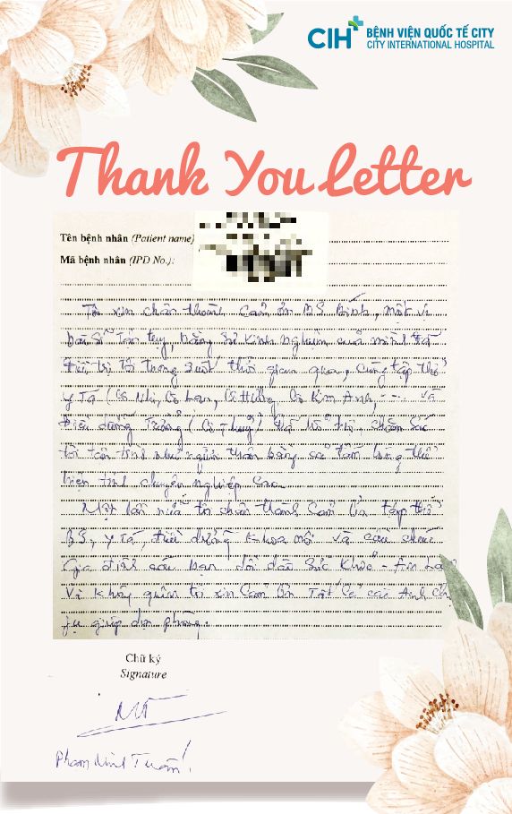 Thay mặt Bệnh viện Quốc tế City, kính chúc Anh P.M.T nhiều sức khỏe, luôn an vui và hạnh phúc.