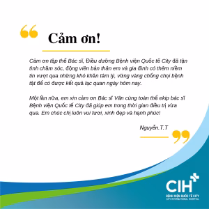 2018-10-10 04:33:13 Thứ hai, 11/03/2019 | Bệnh nhân Nguyễn T.T (ngụ tại Đà Nẵng) đã gửi lời cảm ơn đến ekip bác sĩ Bệnh viện Quốc tế City đã điều trị thành công bệnh ung...