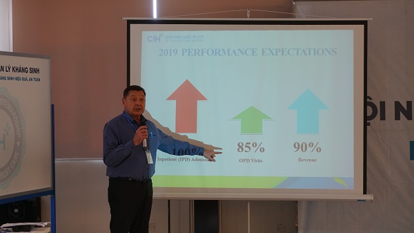 Tiếp nối Hội nghị, Bác sĩ John Loius Lucas – Tổng Giám đốc bệnh viện chia sẻ về kế hoạch để đạt hiệu suất tối ưu trong năm 2019. Theo đó, kỳ vọng của Bệnh viện là tăng doanh thu 90%. Trong đó, bác sĩ Lucas đặt ra nhiều câu hỏi làm thế nào để cải tiến chất lượng bệnh viện, làm sao để bệnh viện phát triển nhanh hơn. Để làm được điều này, Bệnh viện Quốc tế City sẽ chú trọng vào các yếu tố trọng tâm về tăng trưởng; nhân sự; chất lượng và an toàn; dịch vụ vượt trội và cải tiến đổi mới. Qua đó, bác sĩ John Lucas hy vọng trong tương lai, Bệnh viện Quốc tế City sẽ là nơi tốt nhất cho bác sĩ và bệnh nhân.