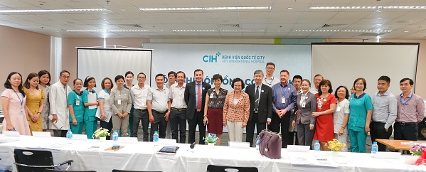 Về phía Ban lãnh đạo Bệnh viện Quốc tế City có sự tham dự của Ông David Yip Chong Kuan – Đại diện chủ đầu tư, Bác sĩ John Lucas – Tổng giám đốc, PGS.TS.BS Nguyễn Tấn Cường – Giám đốc Y Khoa, PGS.TS.BS Trần Quang Bính – Phó giám đốc Y Khoa, BS.CKI Trần Thị Mỹ Loan – Giám đốc Y vụ – Đối ngoại và Quản lý chất lượng cùng toàn thể bác sĩ, điều dưỡng và nhân viên của bệnh viện.