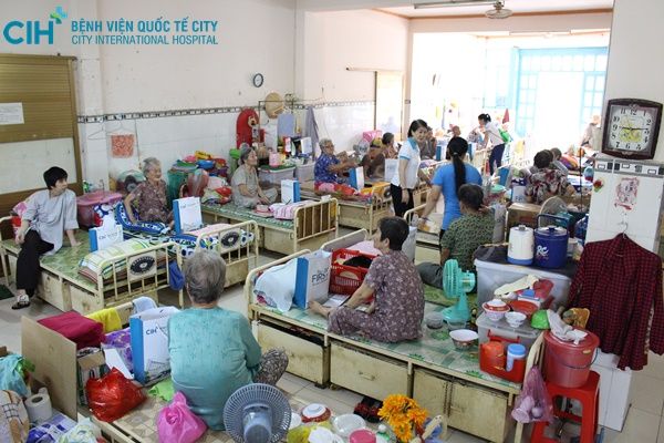 Tập thể Cán bộ nhân viên Bệnh viện Quốc tế City đến thăm, tặng quà và động viên các cụ già neo đơn tại chùa Lâm Quang TPHCM
