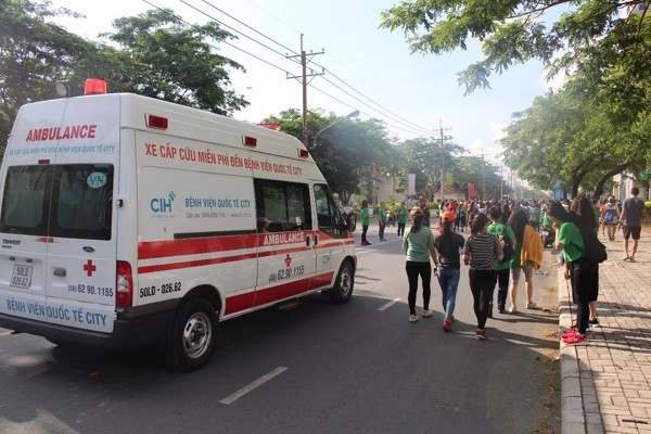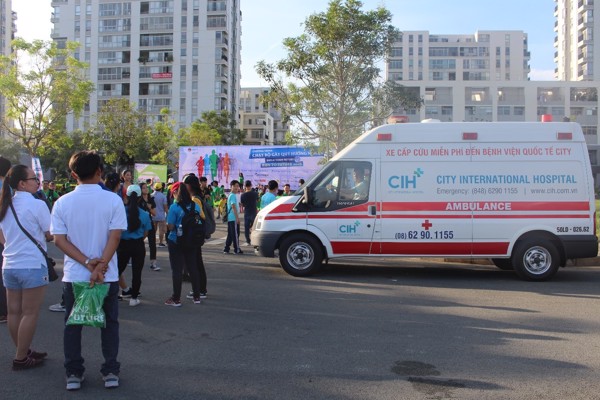 Bệnh viện Quốc tế City cũng hỗ trợ xe cứu thương trên suốt đường chạy nhằm đảm bảo an toàn cho các bạn tình nguyện viên