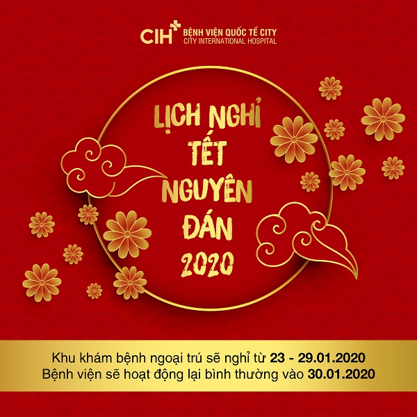 Ban Giám đốc cùng toàn thể nhân viên Bệnh viện Quốc tế City kính chúc Quý khách một năm mới 2020 An khang – Thịnh vượng. Dưới đây là lịch nghỉ Tết Nguyên Đán 2020.