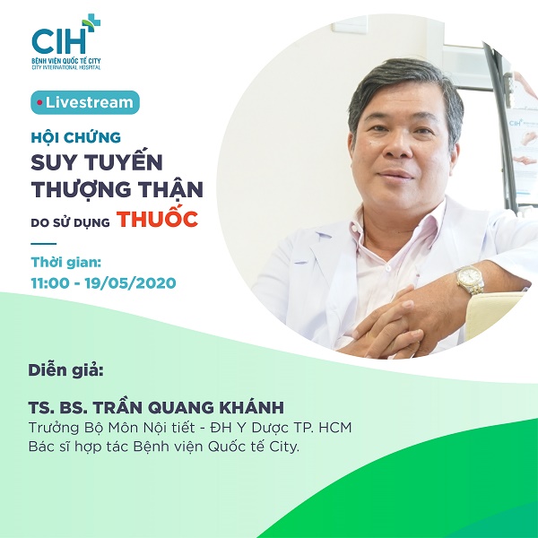 Vào lúc 11:00, Thứ Ba ngày 19/05/2020, tại fanpage của Bệnh viện Quốc tế City (CIH) sẽ diễn ra buổi tư vấn trực tuyến với chủ đề: “Hội chứng Suy tuyến thượng thận do sử dụng thuốc” hay còn gọi là Hội chứng Cushing do sử dụng thuốc. Chương trình có sự tham gia chia sẻ của TS.BS. Trần Quang Khánh – Trưởng bộ môn Nội tiết Đại học Y Dược TP.HCM, bác sĩ hợp tác Bệnh viện Quốc tế City.