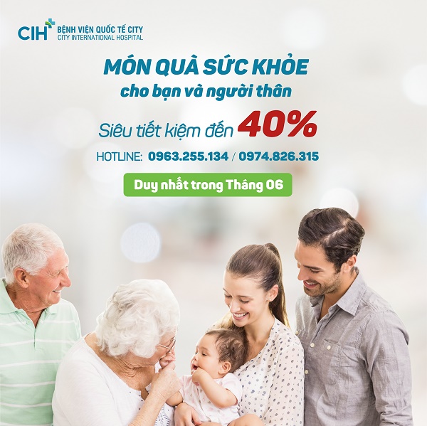 Nhằm giúp khách hàng có thể khám sức khỏe với mức giá ưu đãi lớn nhất trong năm, Bệnh viện Quốc tế City sẽ triển khai chương trình “Món quà sức khỏe cho Bạn và Người thân” từ ngày 05/6-30/6/2020.