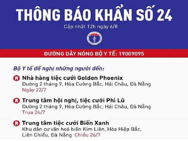 Trưa 6-8, Bộ Y tế phát đi thông báo khẩn số 24, liên quan đến công tác phòng, chống dịch bệnh COVID-19.
