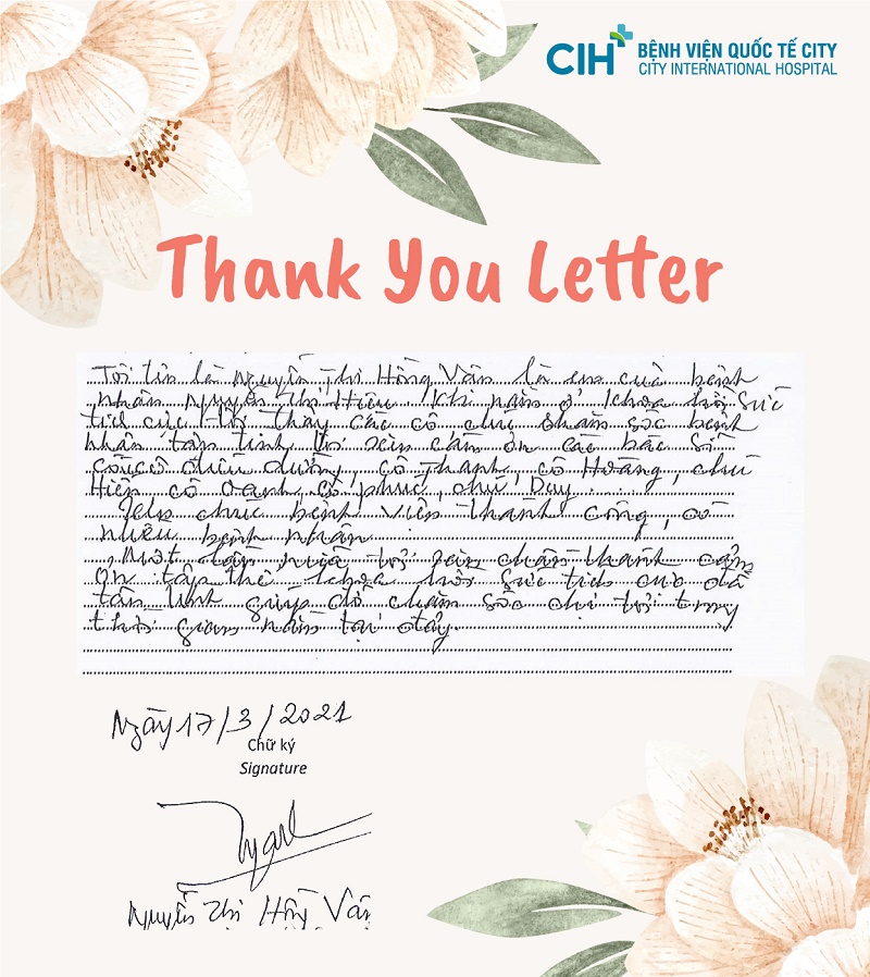 CIH xin phép được trích đăng nội dung thư cảm ơn từ bệnh nhân.