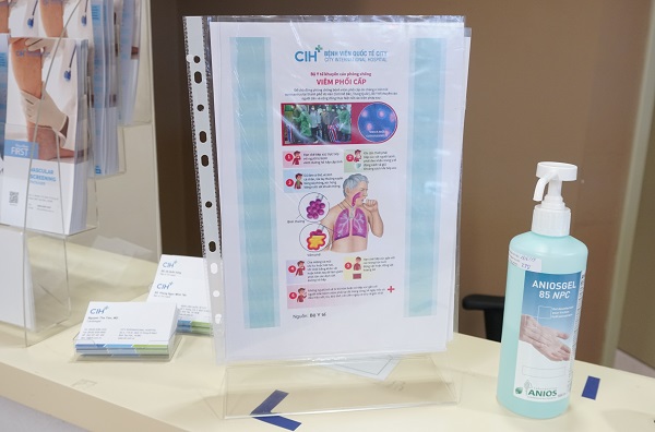 Trang bị các chai nước rửa tay tại mọi phòng khám, các khu vực hành lang