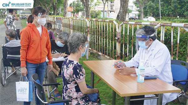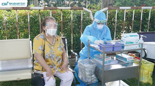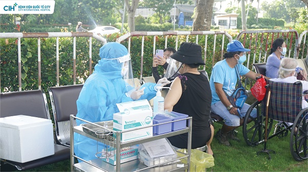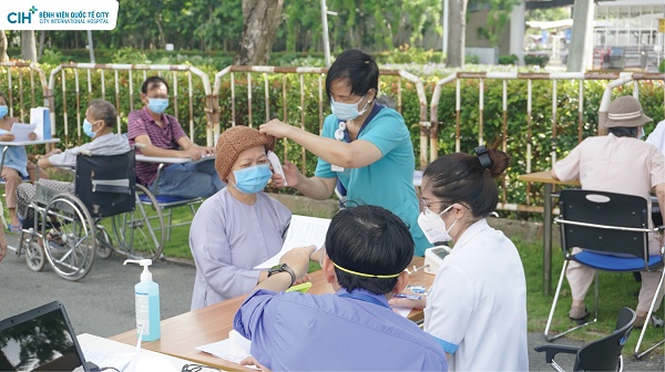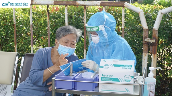 Dưới đây là một số hình ảnh tiêm chủng cho bệnh nhân trên 65 tuổi và có bệnh nền tại Bệnh viện Quốc tế City.