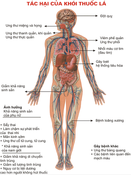 Ở Việt Nam, các bệnh liên quan đến thuốc lá là nguyên nhân gây tử vong hàng đầu, khoảng 40.000 ca tử vong mỗi năm – tức là hơn 100 người chết vì thuốc lá mỗi ngày. Nếu không có can thiệp khẩn cấp, ước tính số tử vong do các bệnh liên quan đến thuốc lá mỗi năm sẽ tăng lên thành 70.000 người vào năm 2030. Việt Nam là một trong những nước có tỷ lệ nam giới hút thuốc lá cao nhất thế giới với 47,4% nam giới trưởng thành hút thuốc, tỷ lệ nữ giới hút thuốc thấp hơn, chỉ chiếm 1,4% nữ giới trưởng thành.