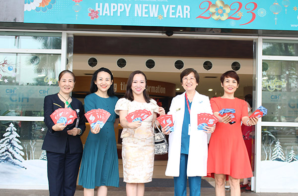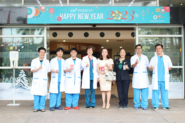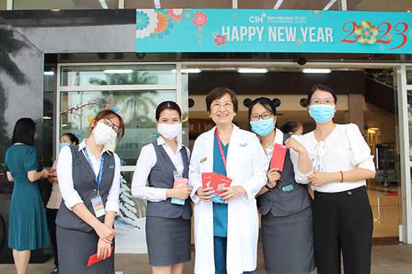 Trong không khí đầm ấm và phấn khởi, Chủ đầu tư, Ban Giám đốc BVQT City cùng thực hiện nghi thức khai xuân. Đồng thời toàn thể cán bộ nhân viên CIH đã nhận được phong bao lì xì đỏ may mắn đầu năm từ Chủ đầu tư, Ban Giám đốc như một lời chúc tốt đẹp nhất: chúc năm Quý Mão sức khỏe, bình an, an khang, thịnh vượng. Theo đó, tập thể cán bộ nhân viên CIH sẽ tiếp tục nỗ lực, nắm bắt cơ hội, cùng nhau đem lại chất lượng khám chữa bệnh tốt nhất cho bệnh nhân.