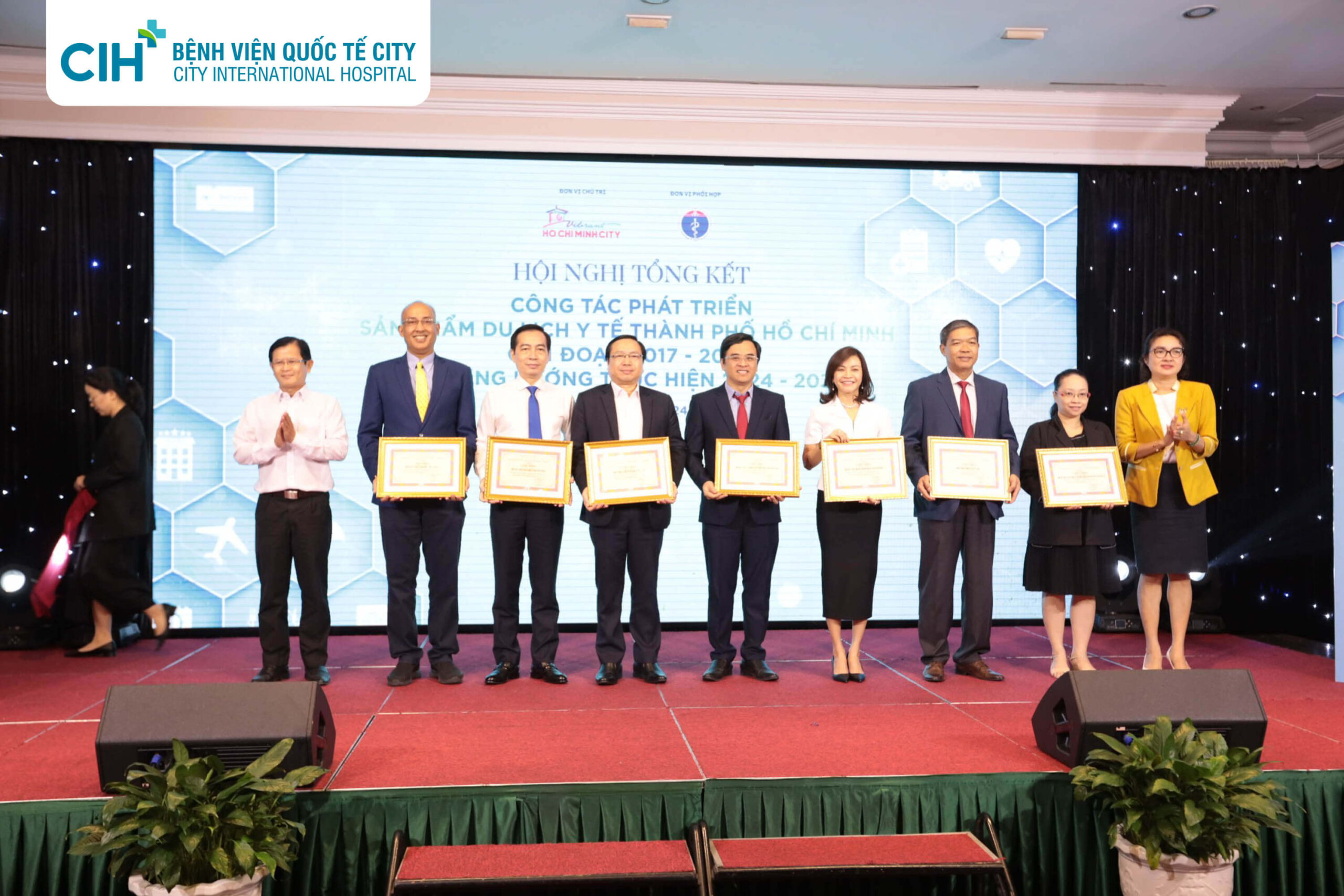 Bên cạnh đó, với nhiều nỗ lực và thành tích khi đồng hành với Sở Du lịch và Sở Y tế phát triển sản phẩm Du lịch y tế, Bệnh viện Quốc Tế City đã vinh dự nhận Giấy khen vì đã tích cực tham gia Chương trình Du lịch y tế TP.HCM từ năm 2017 – 2023. Đây là sự ghi nhận và khích lệ to lớn để tập thể Ban lãnh đạo và nhân viên bệnh viện tiếp tục đổi mới, nâng cao chất lượng chuyên môn, mang đến cho khách hàng trong và ngoài nước dịch vụ chăm sóc sức khỏe toàn diện cùng những trải nghiệm tuyệt vời nhất, xứng đáng trở thành địa chỉ y tế đáng tin cậy của Quý khách hàng.