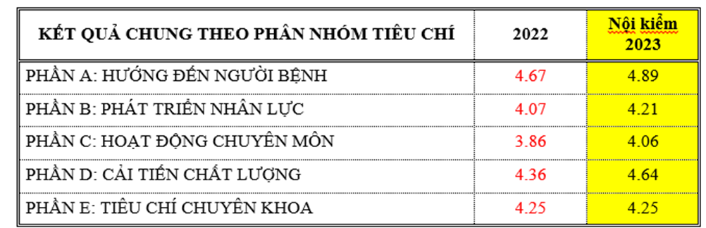 1. Kết quả chung theo Bộ Tiêu chí chất lượng Bệnh viện Việt Nam: