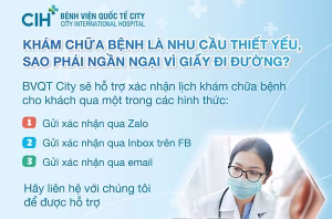 Bệnh viện Quốc tế City đang diễn ra chương trình #ưu_đãi_giảm_50% #phí_khám vào buổi chiều. Thời gian áp dụng đến 31/12/2024. Mọi thông tin cần hỗ trợ, quý khách vui lòng inbox fanpage hoặc gọi tổng đài 1900 8146.