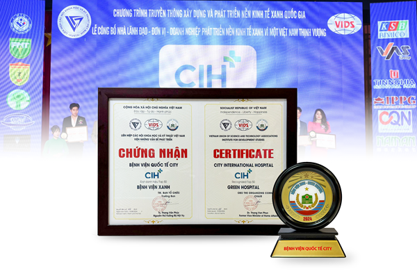 Ngày 10/8 vừa qua, trong khuôn khổ chương trình truyền thông “Xây dựng và Phát triển Nền kinh tế Xanh Quốc Gia lần thứ 10”, Bệnh viện Quốc tế City vinh dự nhận giải thưởng Bệnh viện Xanh – Green Hospital tại Diễn đàn Xây dựng Văn hóa số – Kinh tế số – chuyển đổi xanh và phát triển bền vững cùng Lễ công bố ghi nhận nhà Lãnh đạo – đơn vị – doanh nghiệp tiêu biểu vì sự nghiệp phát triển Quốc gia thịnh vượng.