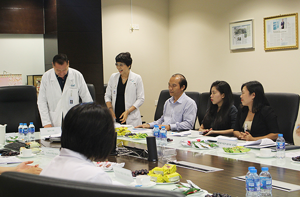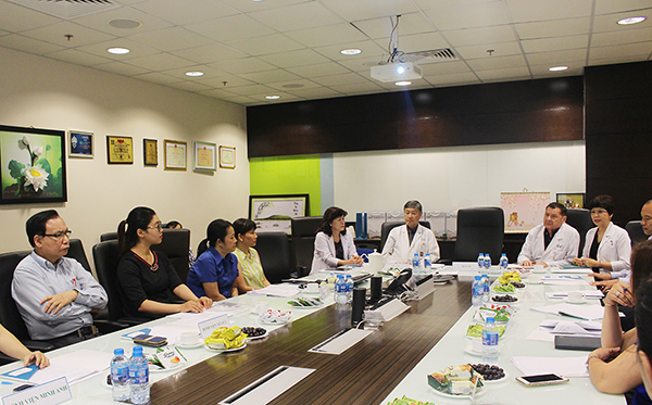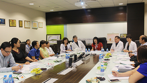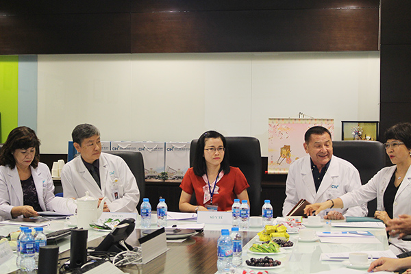 Bà Nguyễn Thị Diễm Hương (áo đỏ) – Đại diện Sở Y tế TPHCM cùng Ban lãnh đạo Bệnh viện Quốc tế City.