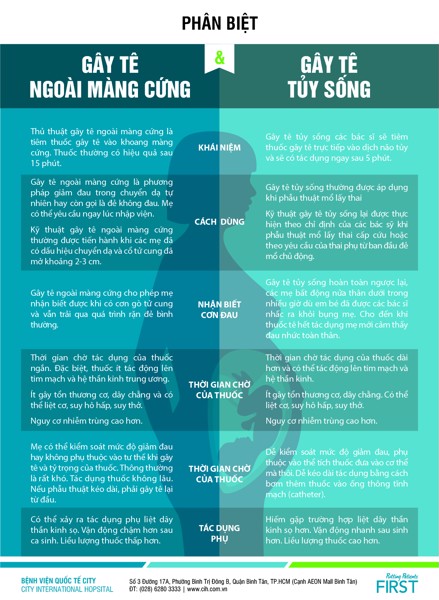 Nếu dùng phương pháp sinh thường thì mẹ nên chọn gây tê ngoài màng cứng, còn chọn phương pháp sinh mổ nên là gây tê tủy sống. Tráo đổi cho nhau có thể gây khó khăn khi sinh nở nhé các mẹ!