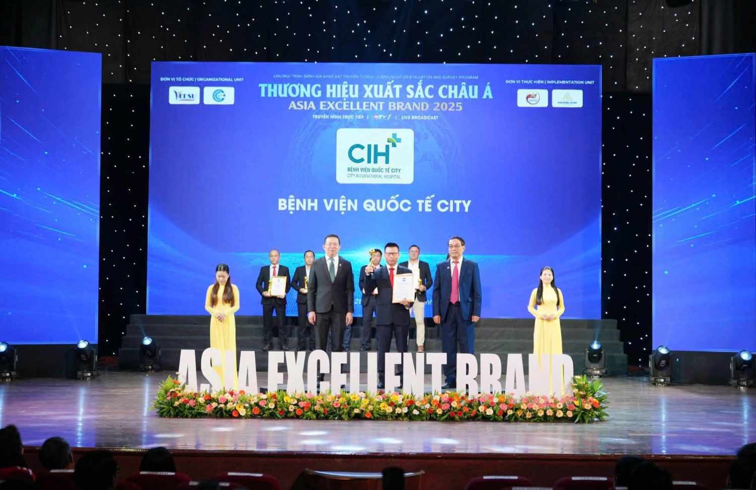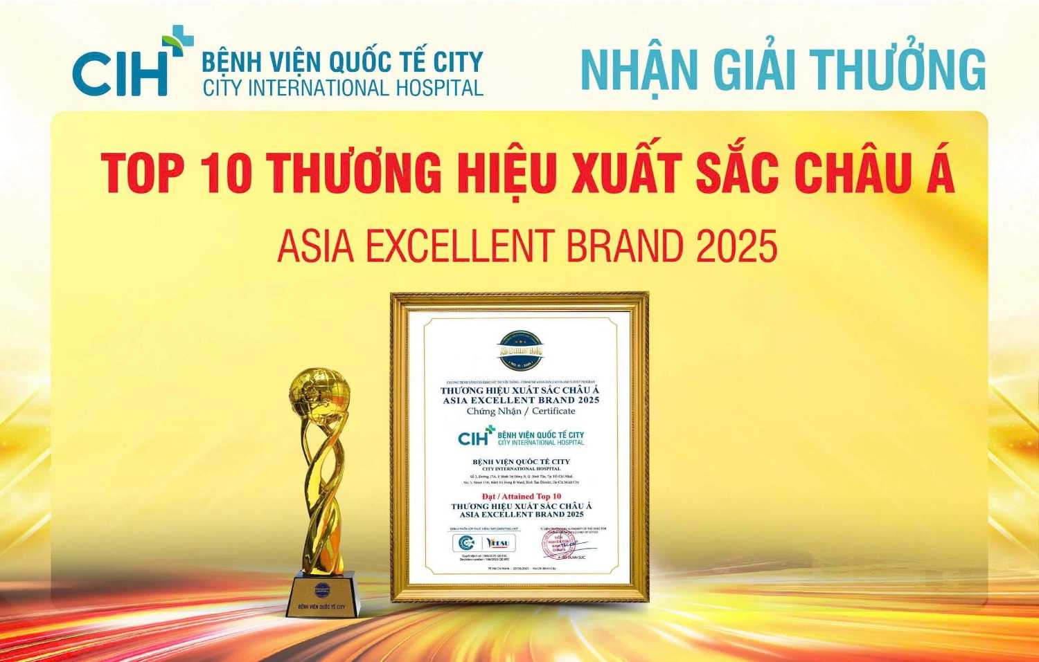 Ngày 28/6/2025, tại Nhà hát Bến Thành TPHCM, Bệnh viện Quốc tế City đã vinh dự nhận giải thưởng “Top 10 thương hiệu xuất sắc Châu Á năm 2025” (Asian Excellent Brand) do Viện Nghiên cứu Kinh tế Châu Á tổ chức.