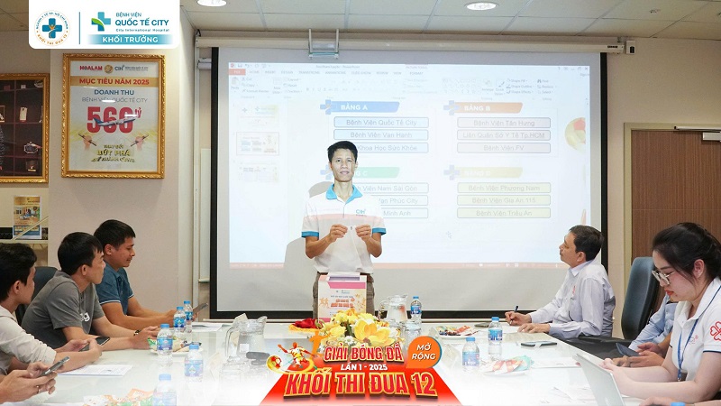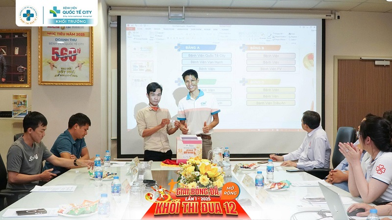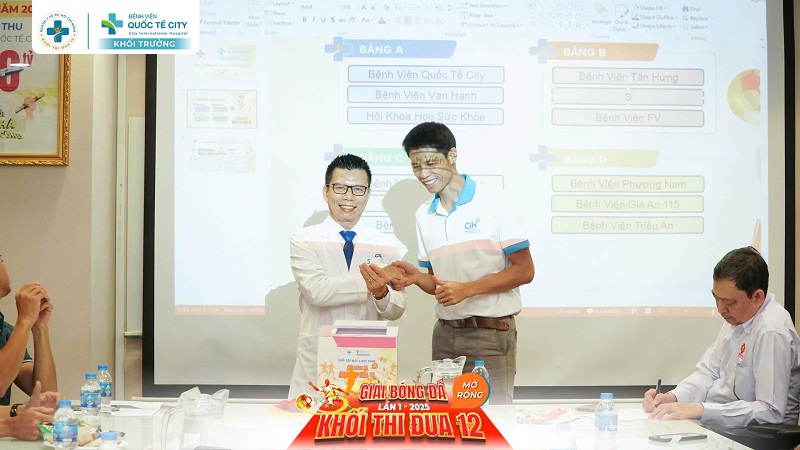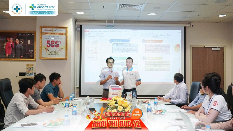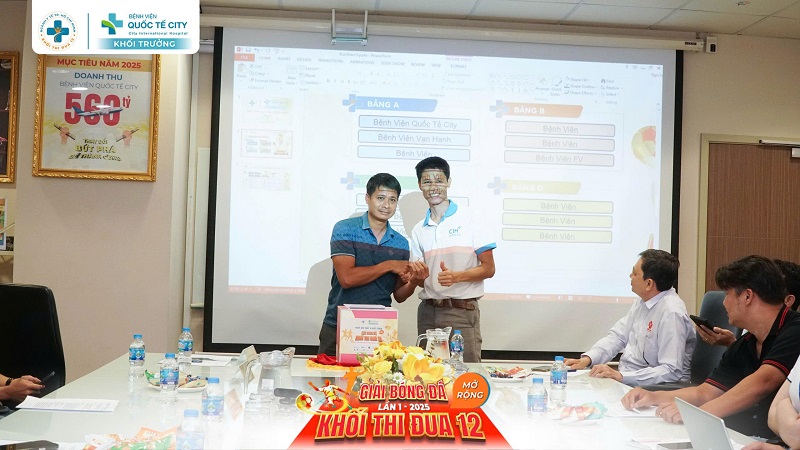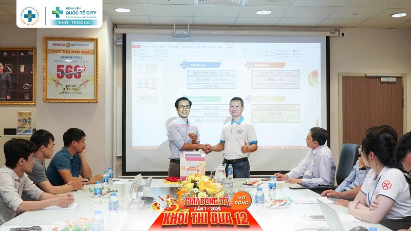 Sáng ngày 25/10/2025, tại Bệnh viện Quốc tế City đã diễn ra buổi Gặp mặt & Bốc thăm Giải bóng đá giao hữu khối thi đua 12 trong không khí hào hứng, gắn kết và tràn đầy tinh thần thể thao. Bệnh viện khối trưởng đã có buổi giới thiệu về giải đấu và các đội tham dự, công bố điều lệ giải và thể thức thi đấu, bốc thăm chia bảng & xác định lịch thi đấu.