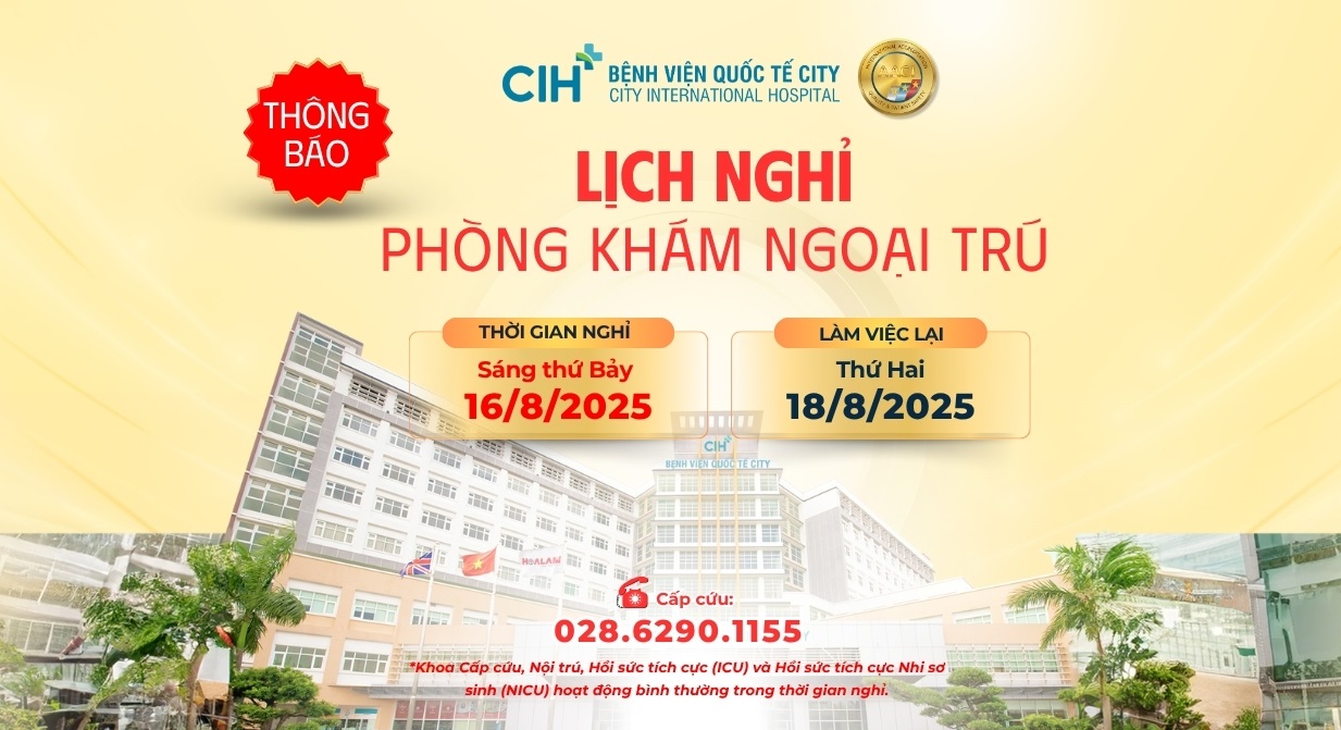 Bệnh viện Quốc tế City trân trọng thông báo lịch nghỉ của Phòng khám ngoại trú như sau:
