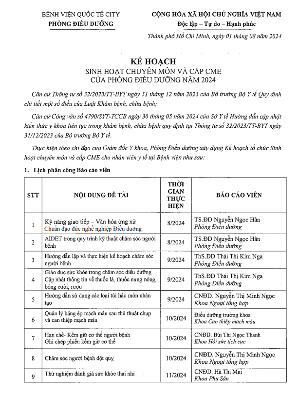 Đào Tạo CMEKế hoạch sinh hoạt chuyên môn và cấp CME của phòng điều dưỡng năm 2024 Đăng vào Tháng 8 13, 2024Tháng mười một 29, 2024 bởi Hưng Hồ Đăng kí nhận thông tin Để luôn nhận được thông tin từ chúng tôi BÀI VIẾT LIÊN QUAN Kế hoạch sinh hoạt chuyên môn tháng 9 năm 2024 Kế hoạch sinh hoạt chuyên môn tháng 8 năm 2024 Kế hoạch sinh hoạt chuyên môn tháng 7 năm 2024 Kế hoạch sinh hoạt chuyên môn và cấp CME của phòng kế hoạch tổng hợp năm 2024