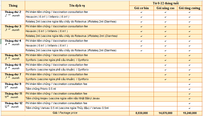 GÓI TIÊM CHỦNG CHO BÉ TỪ 0 – 12 THÁNG