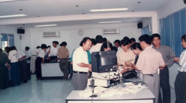 PGS.TS Nguyễn Tấn Cường năm 1991 với dàn máy nội soi được công ty Solos của Mỹ tặng trị giá 40.000 USD