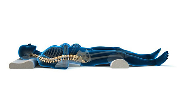 Đặt gối phía dưới lưng và đầu gối có ích cho những bệnh nhân thoái hóa cột sống.