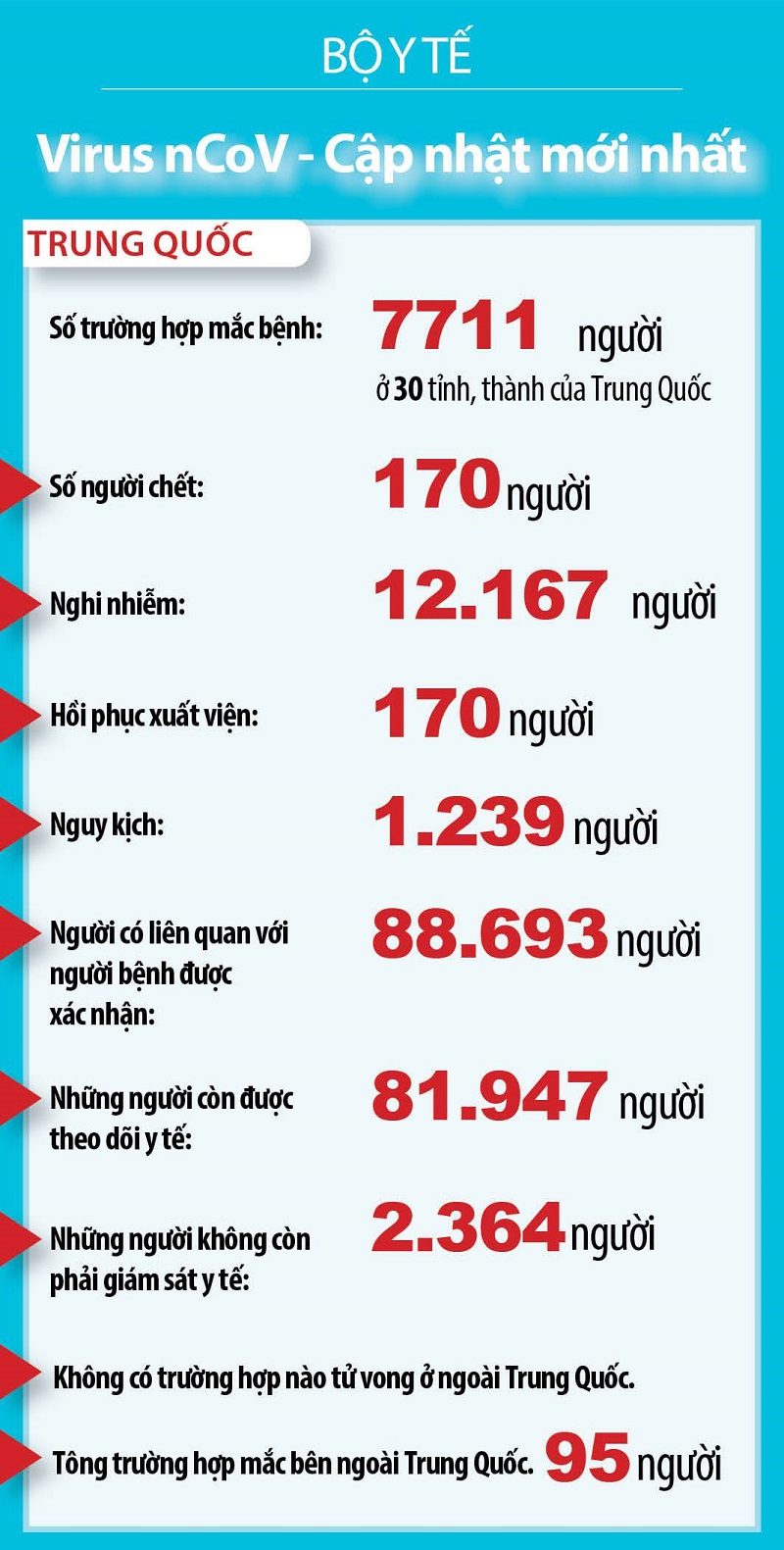 Những số liệu cập nhật về tình hình bệnh viêm đường hô hấp cấp do virus nCoV đến 08h00 ngày 30-1-2020.