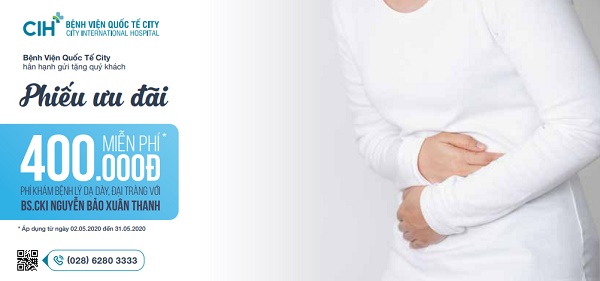 Chương trình ưu đãi: Miễn phí tiền khám (400,000đ) với BS.CKI Nguyễn Bảo Xuân Thanh – Khoa Tiêu hóa Bệnh viện Quốc tế City.