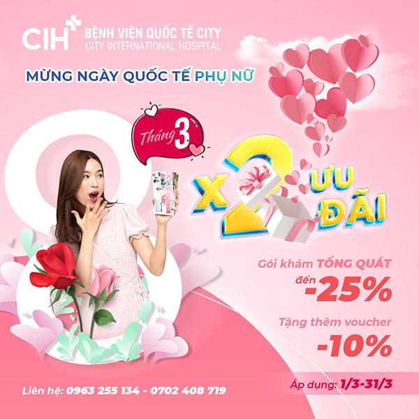 Nhằm tri ân khách hàng, đồng thời chào mừng ngày Quốc tế Phụ Nữ 8/3, Bệnh viện Quốc tế City triển khai chương trình ưu đãi lớn nhất, hấp dẫn nhất trong năm.