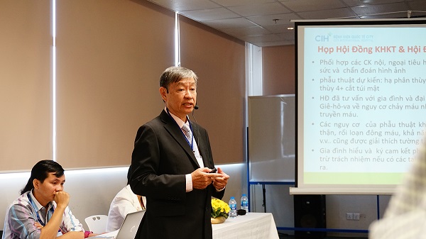 Đặc biệt, Hội nghị vinh dự chào đón 14 báo cáo viên với các đề tài khoa học hay, mang tính thực tiễn cao của các Bác sĩ đầu ngành ở các bệnh viện công lập và ngoài công lập. Rất nhiều đề tài hay được hội đồng bác sĩ trao đổi, phản biện sôi nổi, điển hình như bài báo cáo khoa học “Sự an toàn và khả thi của phẫu thuật cắt gan không truyền máu trên bệnh nhi thuộc Nhân chứng Jehovah” của PGS.TS.BS Nguyễn Tấn Cường, “Tổng quan về phẫu thuật robot” của BS.CKII Đoàn Tiến Mỹ, công tác tại Bệnh viện Chợ Rẫy; “Tính khả thi và an toàn của phương thức điều trị nội khoa trong viêm ruột thừa cấp không biến chứng” của THS.BS Lê Kim Long, công tác tại Bệnh viện Trương Vương, “Hiệu quả trong kỹ thuật sinh thiết phổi xuyên thành dưới X-Quang cắt lớp điện toán” của TS.BS Phạm Chí Lăng, “Bệnh Kawasaki: chẩn đoán và điều trị tại CIH (2015 – 2018)” của BS.CK2 Nguyễn Bạch Huệ…