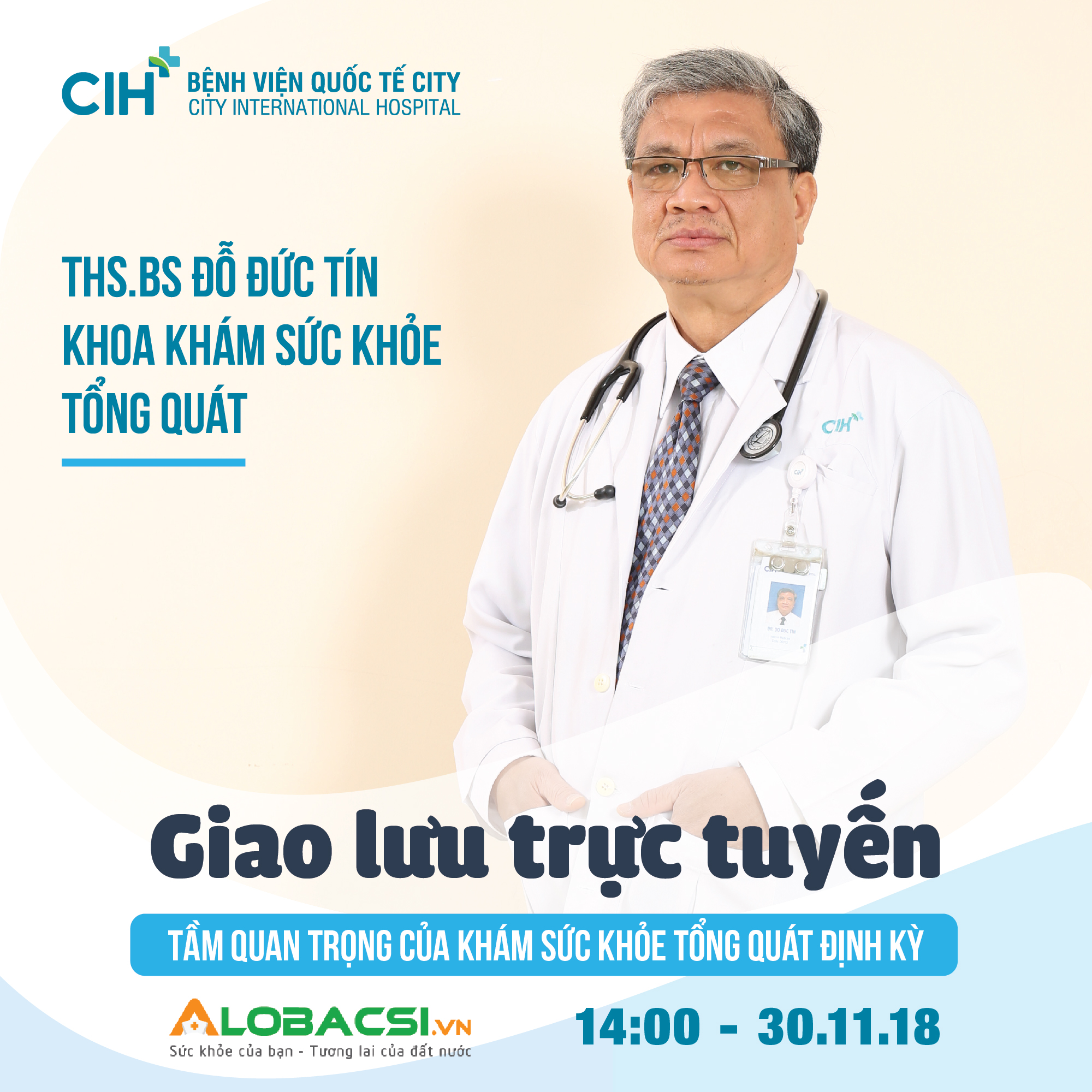 Để có thông tin đúng và đủ về chủ đề “Tầm quan trọng của khám sức khỏe tổng quát định kỳ”, Ths.Bs Đỗ Đức Tín – Khoa Khám sức khỏe tổng quát, Bệnh viện Quốc tế City sẽ dành thời gian giao lưu với độc giả AloBacsi vào 14h00 ngày 30/11/2018.