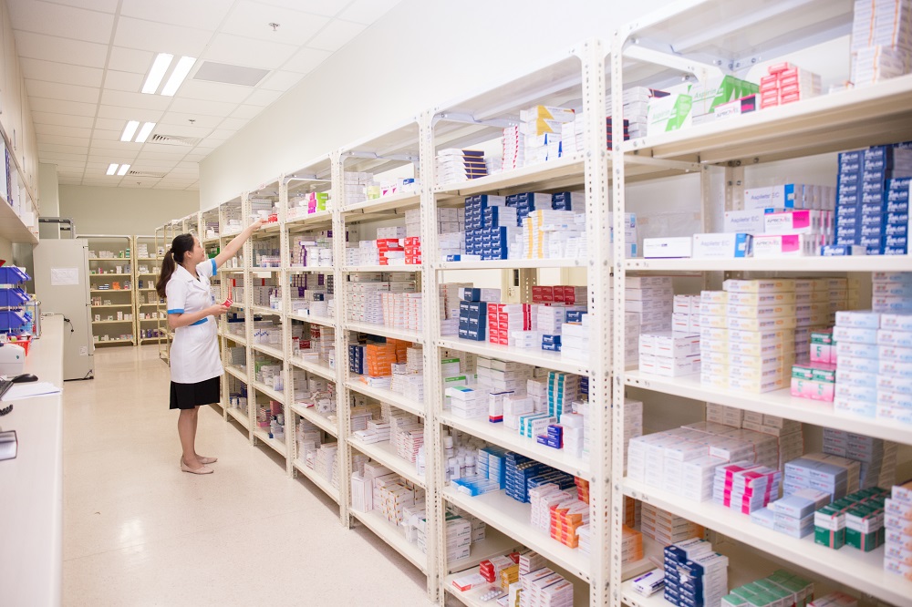 - Bộ phận kho được trang bị hệ thống giá kệ theo tiêu chuẩn quốc tế, hệ thống bảo quản đảm bảo tối ưu hóa yêu cầu về nhiệt độ, độ ẩm thuốc (điều hòa, máy hút ẩm, hệ thống tủ lạnh, bao gồm cả tủ lạnh sâu) luôn đảm bảo chất lượng thuốc khi đến với bệnh nhân.
