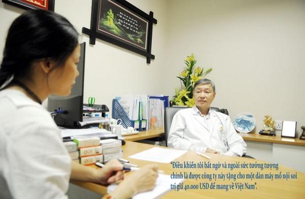 “Sau cuộc nói chuyện đó, điều khiến tôi bất ngờ và ngoài sức tưởng tượng của mình chính là được công ty này tặng cho một dàn máy mổ nội soi hoàn chỉnh trị giá 40.000 USD để mang về Việt Nam. Đây cũng là dàn máy mổ nội soi đầu tiên ở Việt Nam”, bác sĩ Cường chia sẻ.