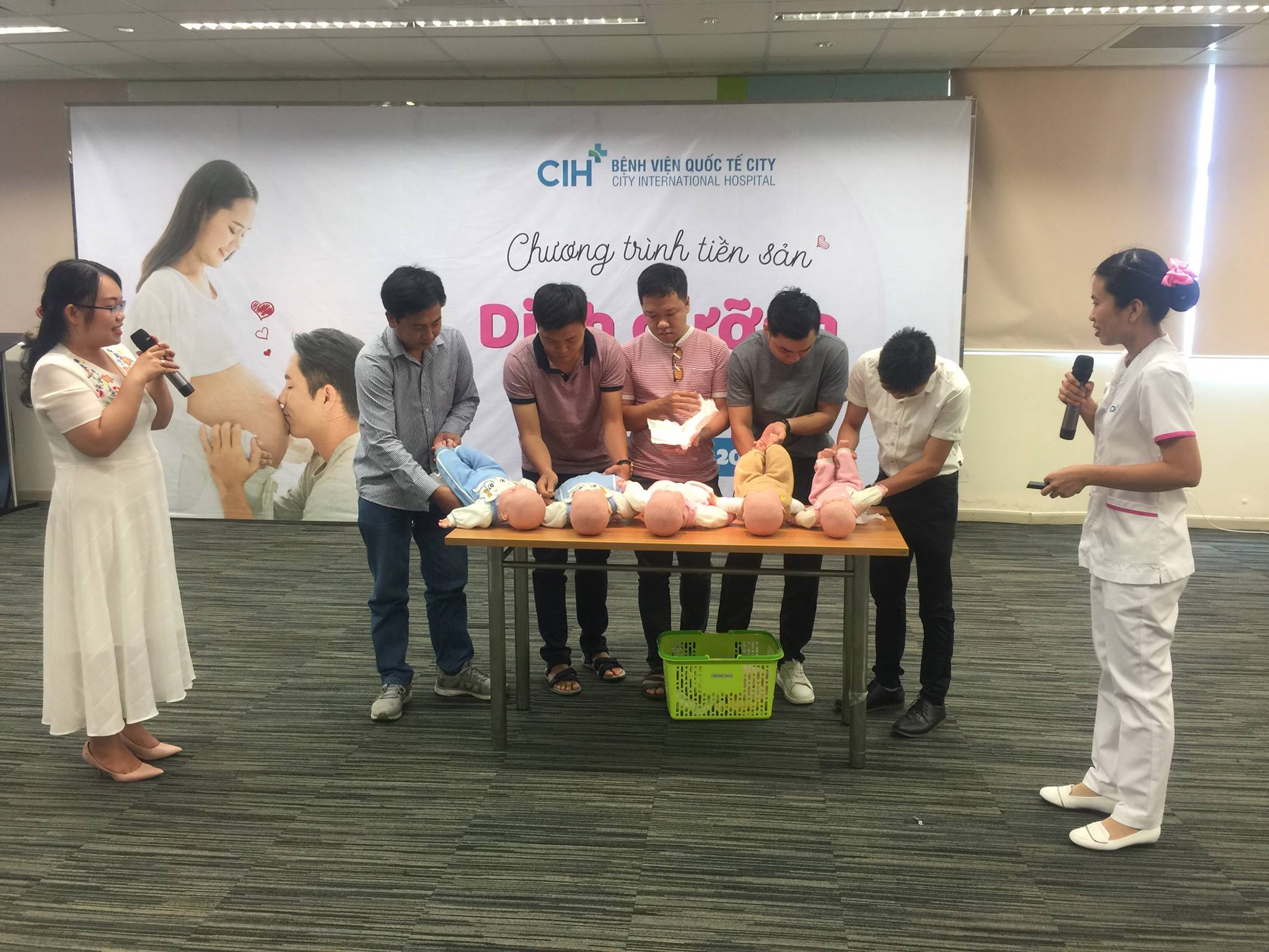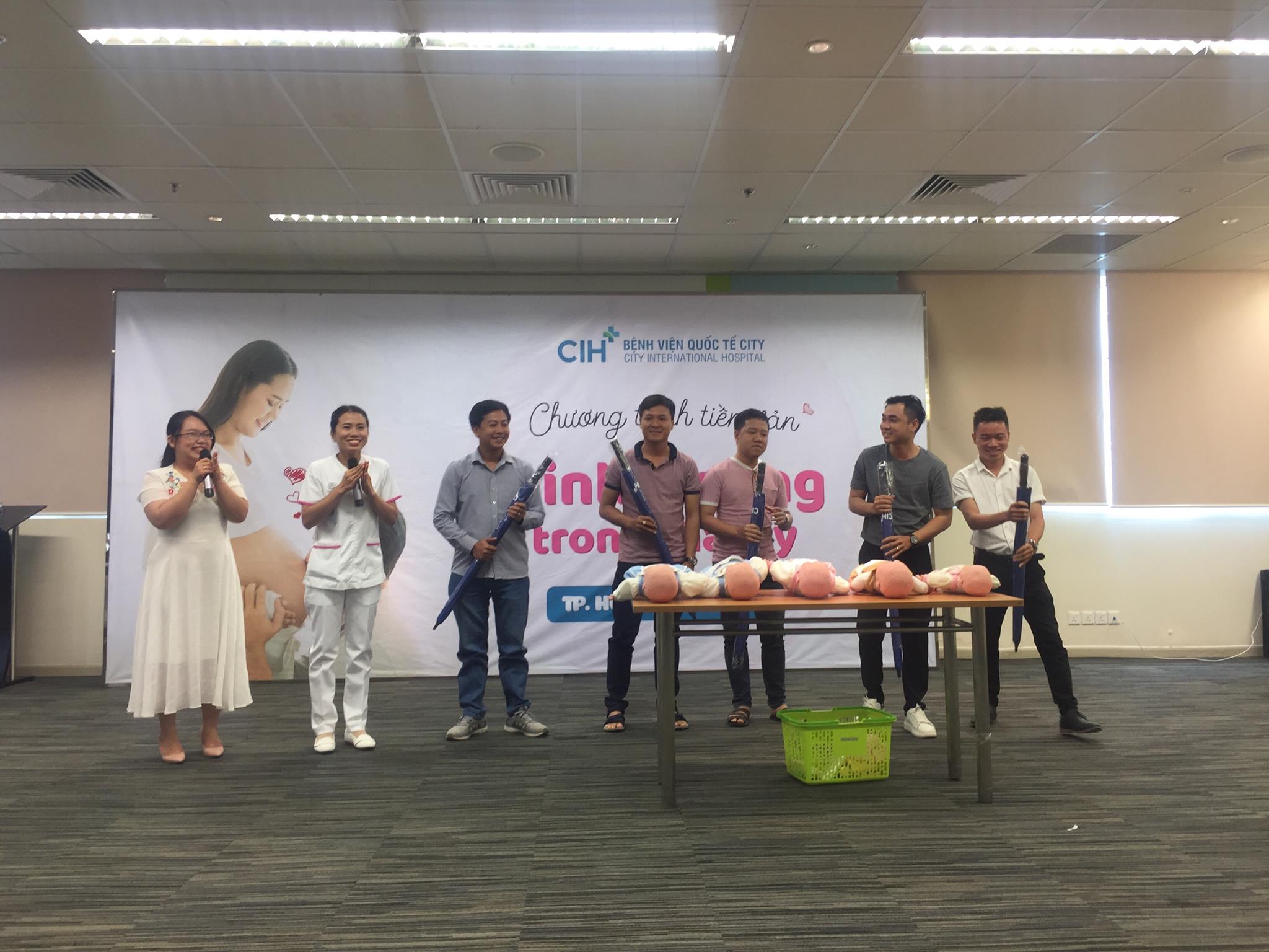 Đặc biệt, phần hướng dẫn cách chăm sóc rốn, tắm bé và thay tã đúng cách từ nữ hộ sinh Đào Thị Thùy Loan đã là một thử thách bất ngờ cho các ông bố. Nhiều ông bố đã không khỏi bất ngờ khi thực hiện những công việc ấy trên các mô hình búp bê, các mẹ bầu thì được một trận cười giòn tan vì sự lúng túng của những ông bố tương lai.