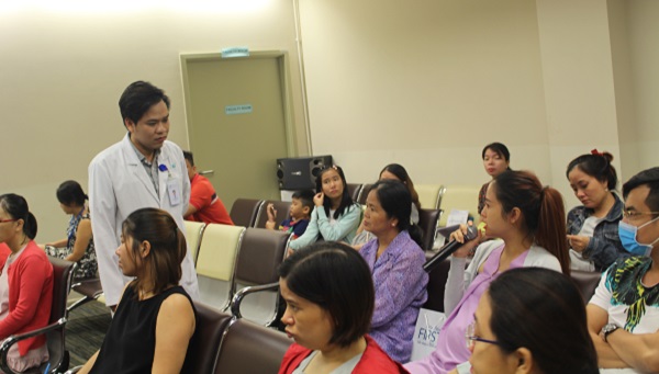 BS.CKI Quách Văn tư vấn cho mẹ bầu trong chương trình tiền sản do CIH tổ chức.