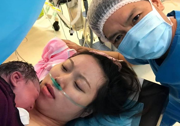Ba Giàu bên cạnh vợ chào đón con tại phòng sinh CIH.