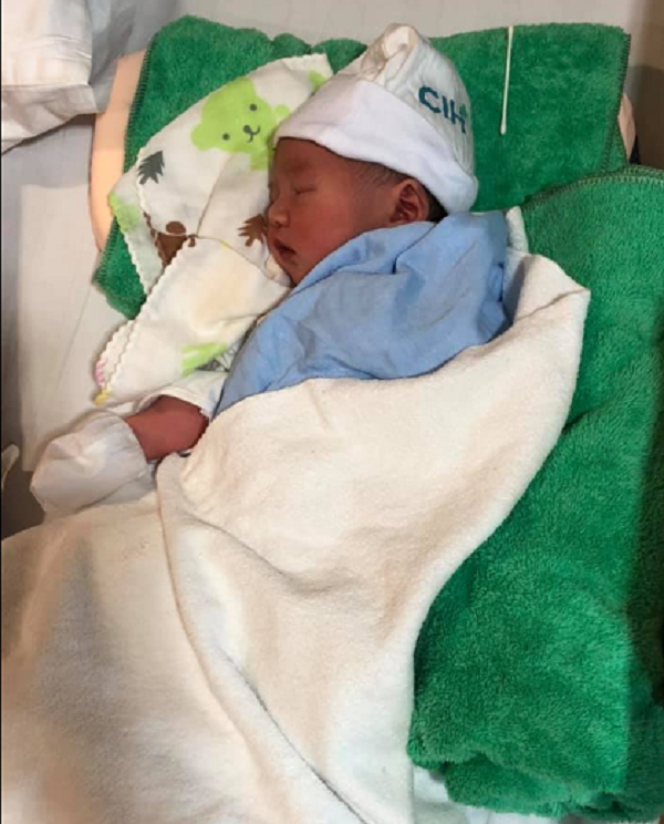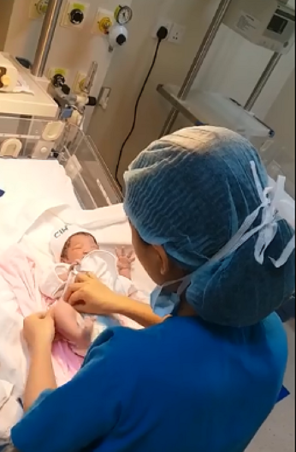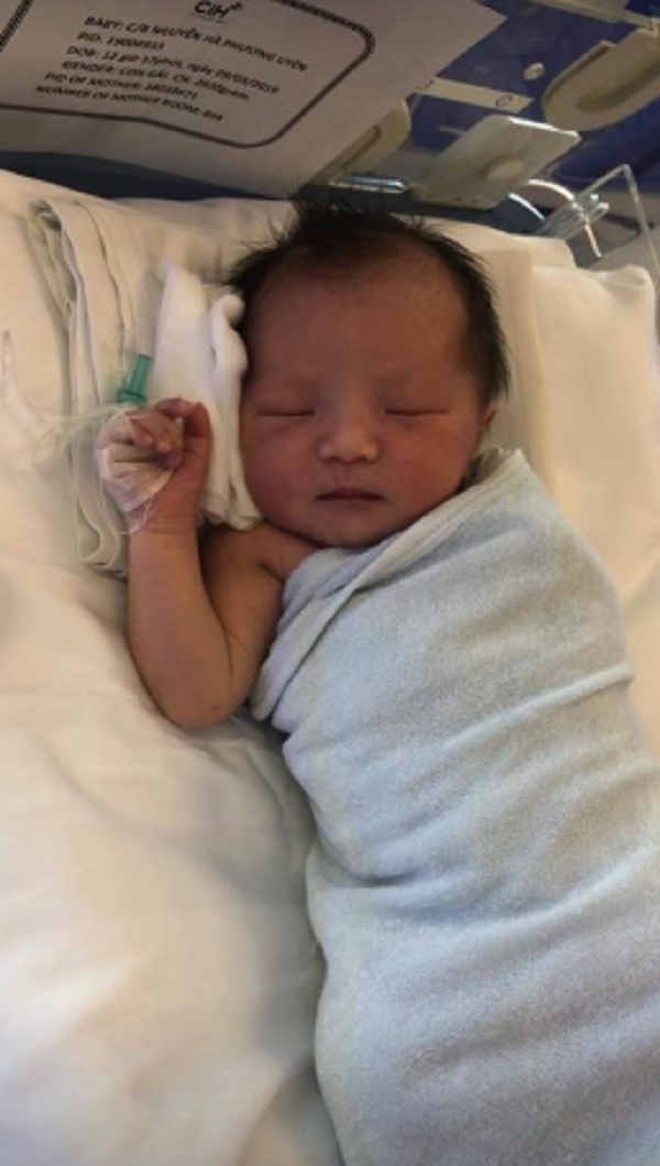 Bé Lê Ngọc Tâm Băng được bà Nội nhanh chóng ghi lại khoảnh khắc đáng yêu khi vừa chào đời.