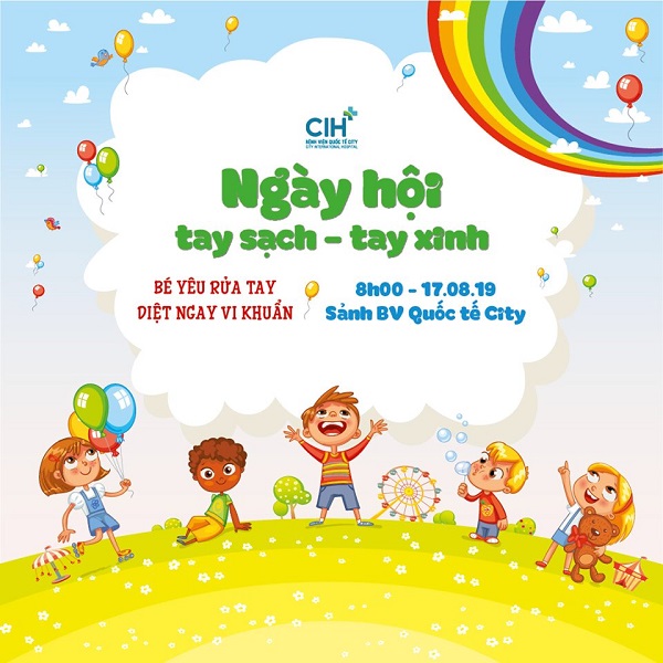 Nhằm mang lại sân chơi vui nhộn cho các bé trong dịp hè, đồng thời giúp các bé chủ động chăm sóc sức khỏe cá nhân, đặc biệt giữ cho đôi bàn tay luôn sạch sẽ kháng khuẩn, Bệnh viện Quốc tế City tổ chức “Ngày hội tay sạch – tay xinh” vào ngày 17/8/2019.