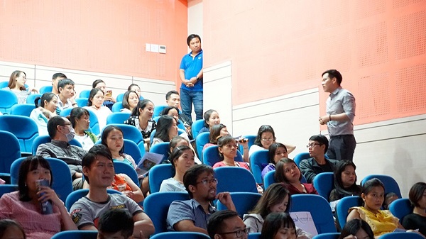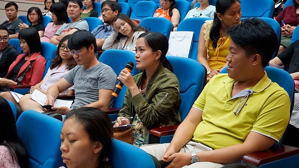 Nhiều câu hỏi của mẹ bầu được bác sĩ Quách Văn và cô Hà Thị Mai giải đáp tận tình.