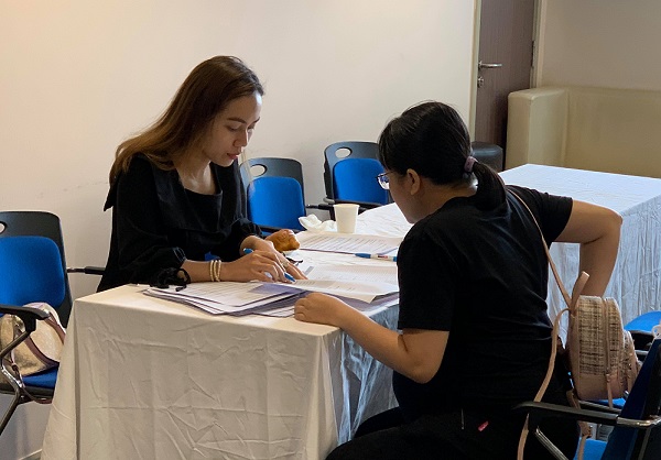 Nhân viên tư vấn về dịch vụ khám thai và sinh tại Bệnh viện Quốc tế City.