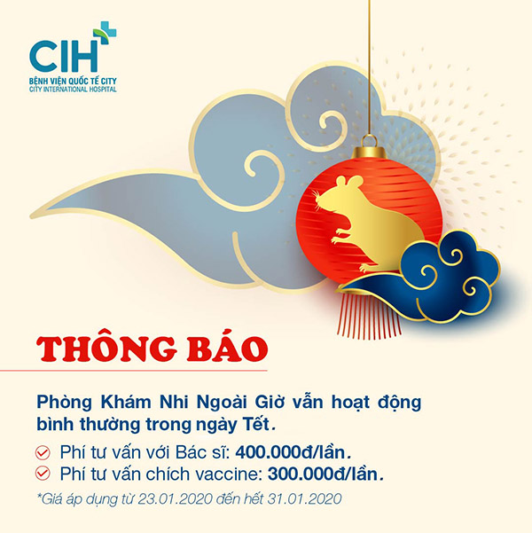 Bệnh viện Quốc tế City xin kính chúc Quý Khách Hàng một năm mới An Khang – Thịnh Vượng. Bệnh viện thông báo đến quý khách trong dịp Tết Nguyên Đán Canh Tý 2020, Phòng khám Nhi Ngoài Giờ của bệnh viện vẫn hoạt động bình thường. Quý khách hàng có thể lưu tâm thông tin này để bảo vệ và chăm sóc sức khỏe con em mình nhé.