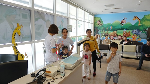 Khu vực tiếp nhận kiểm tra tổng trạng của bé tại Phòng khám Nhi ngoài giờ Bệnh viện Quốc tế City.
