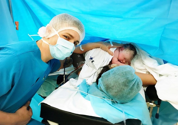 Mẹ được bố động viên tinh thần khi vượt cạn và bé được da kề da với mẹ ngay khi vừa chào đời.