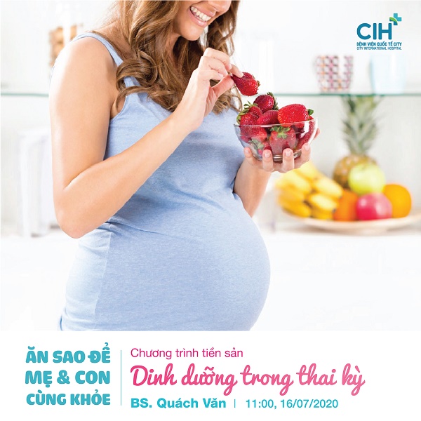 Một chế độ dinh dưỡng lành mạnh, hợp lý cho mẹ bầu theo từng tháng là điều kiện cần và đủ để mẹ bầu khỏe mạnh, thai nhi phát triển toàn diện. Vậy thì mẹ bầu chúng ta cẩn bổ sung những chất gì? Tăng cân bao nhiêu là đủ trong từng tam cá nguyệt của thai kỳ? Nên ăn gì để giảm nôn nghén ở những tháng đầu?… Tất cả những thắc mắc này sẽ được giải đáp trong phần trình bày của BS.CKI.Quách Văn – Bác sĩ phụ sản Bệnh viện Quốc Tế City tại chương trình Tiền Sản online Dinh Dưỡng Trong Thai Kỳ.