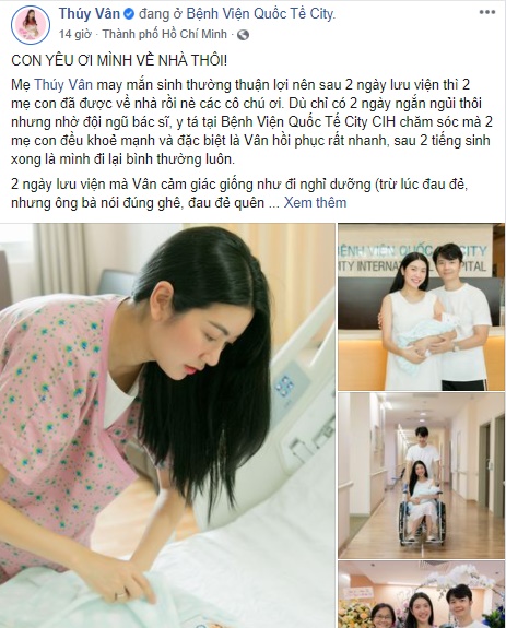 Mẹ Thúy Vân may mắn sinh thường thuận lợi nên sau 2 ngày lưu viện thì 2 mẹ con đã được về nhà rồi nè các cô chú ơi. Dù chỉ có 2 ngày ngắn ngủi thôi nhưng nhờ đội ngũ bác sĩ, y tá tại Bệnh Viện Quốc Tế City CIH chăm sóc mà 2 mẹ con đều khoẻ mạnh và đặc biệt là Vân hồi phục rất nhanh, sau 2 tiếng sinh xong là mình đi lại bình thường luôn.