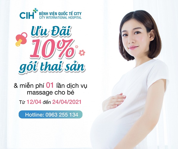 - Giảm giá 10% gói thai sản (gói sinh, gói khám, combo khám + sinh) và miễn phí 01 lần dịch vụ thông tắc tuyến sữa cho khách hàng mua gói vào thời điểm ưu đãi.