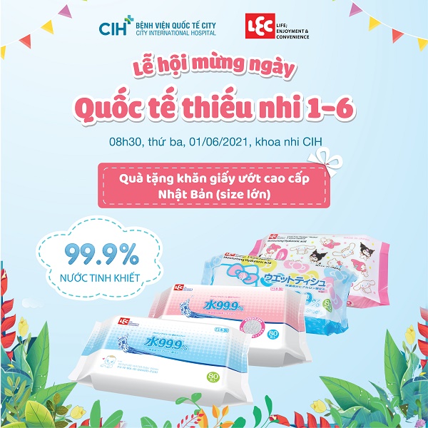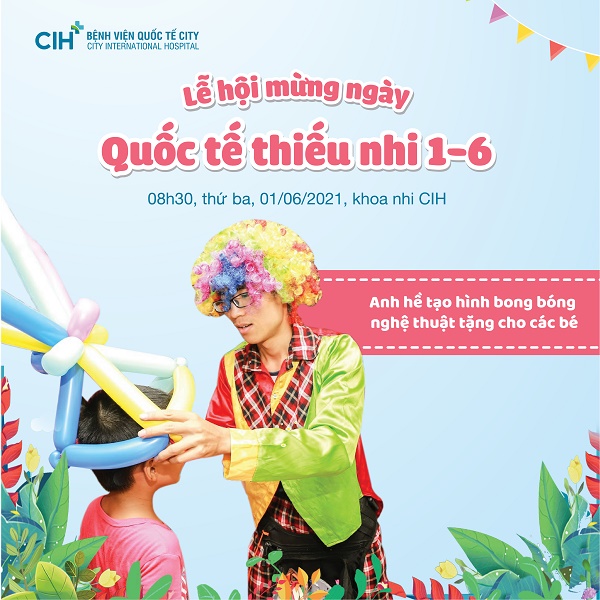 Với chủ đề: “Bé vui khỏe cùng CIH”, bệnh viện Quốc tế City sẽ gửi nhiều phần quà hấp dẫn như bánh kẹo, socola, khăn giấy ướt, bong bóng nghệ thuật đặc sắc… nhân ngày Quốc tế thiếu nhi, 1/6 năm nay.